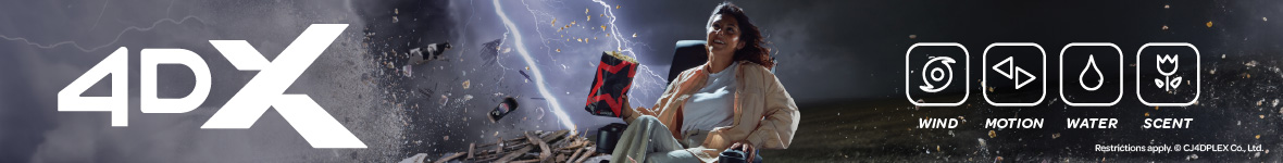 WARNING: 4DX seats not suitable for women who are pregnant, the elderly, or persons with medical conditions (including heart conditions and high blood pressure), or injuries. Doctor approval may be needed. Not suitable for children under 4. Children aged 4 to 7 need supervision. No hot drinks or alcohol allowed. Effects are not applicable to all films and vary with each film. Please refer to 4DX Safety Warning And Guidelines for full safety warning and guidelines. ©CJ4DPLEX Co., Ltd.