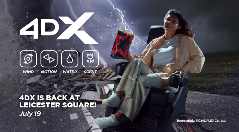 Experience extreme sensory cinema with 4DX, a Cineworld exclusive in the UK and Ireland. With stimulating effects like water, wind, scent and strobe lighting, that thrill you in your moving seat. Fun on your own, better with friends – 4DX is Cineworld’s most exhilarating way to watch a film.